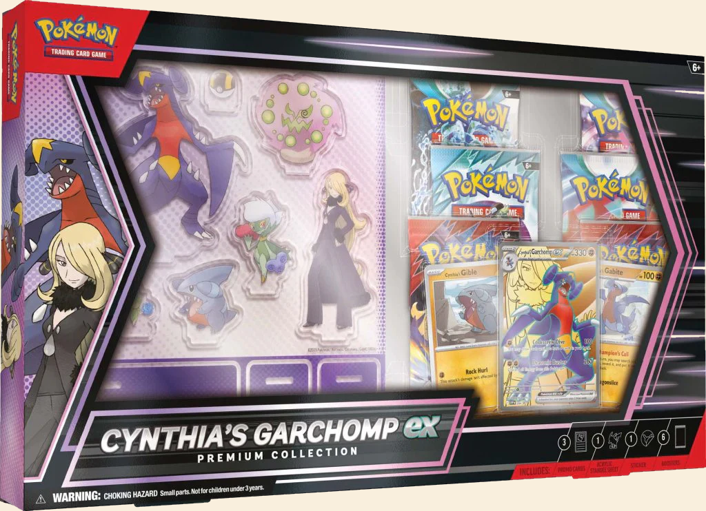 Step into the Champion’s shoes and command the battlefield with Cynthia’s Garchomp Collection! Featuring one of Sinnoh’s most iconic Trainers and her ferocious Dragon- and Ground-type partner, this box is a must-have for collectors and competitive players alike.